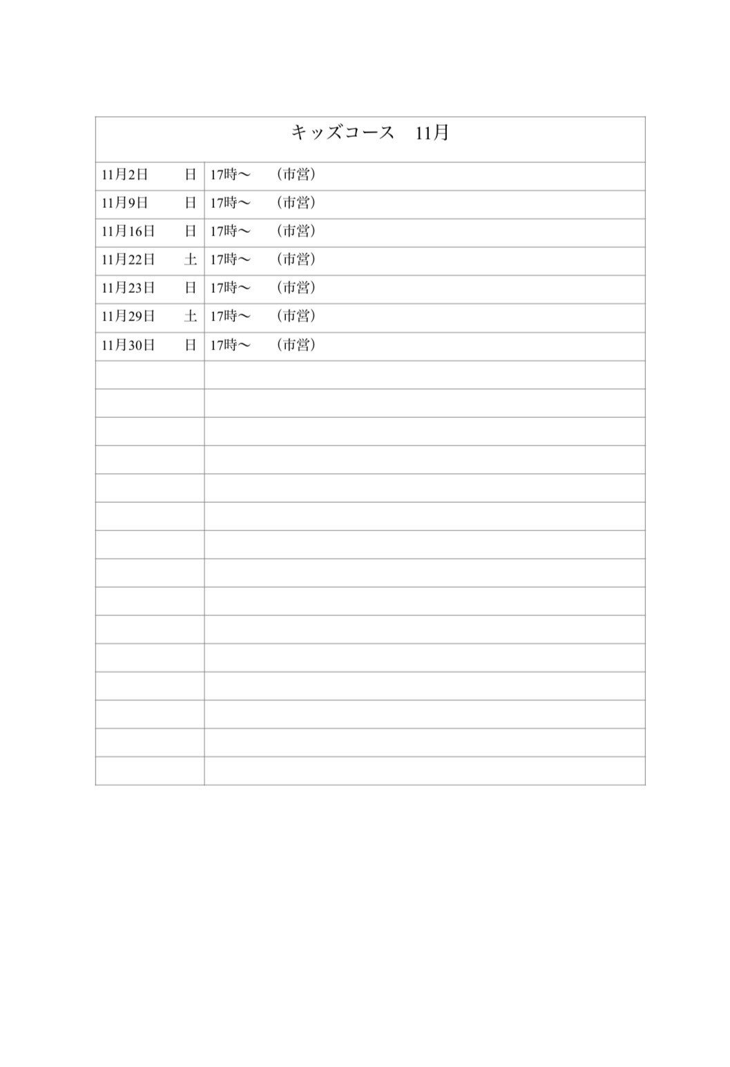 | 日 | 月 | 火 | 水 | 木 | 金 | 土 |